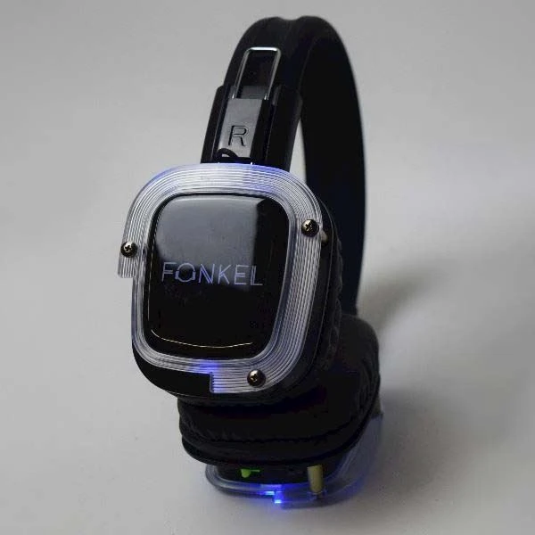 Tweedehands, gebruikte hoofdtelefoon met logo van Fonkel op de zijkant.