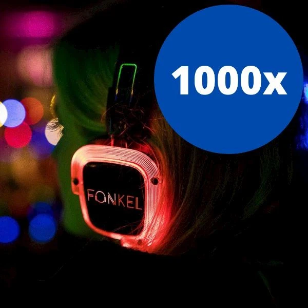 Silent Disco set: 1000 koptelefoons + 3 zenders